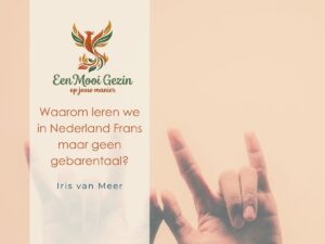 - Waarom leren we in Nederland Frans maar geen gebarentaal?Mijn kinderen leren thuis (nog) geen Frans. Dat is een bewuste keuze — maar geen principiële. Als ze Frans willen leren, leren ze Frans. Taal is prachtig. Meer talen spreken is bijna altijd winst. Maar als ik nadenk over welke taal ik ze het liefst zou meegeven — naast Nederlands en Engels — dan is… Lees meer: Waarom leren we in Nederland Frans maar geen gebarentaal?